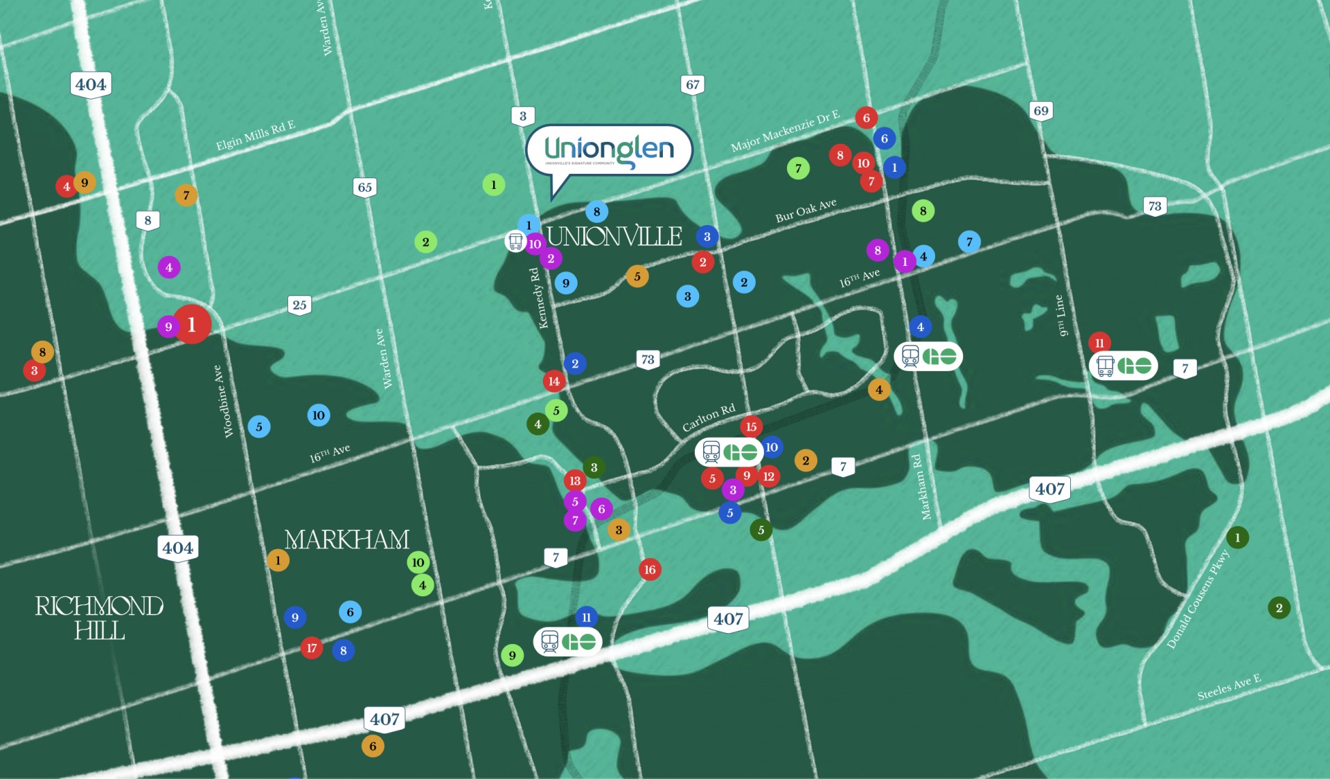 Unionglen is Unionville’s most anticipated community. Not just homes — towns,single-family homes, and more — but schools, parks, and retail spaces, all thoughtfully integrated and curated to stand the test of time. Bike rides and daily walks along tree-lined crescents and trails, afternoons in the local playgrounds. Unionglen is the beginning of an enriched lifestyle for you and your family.
